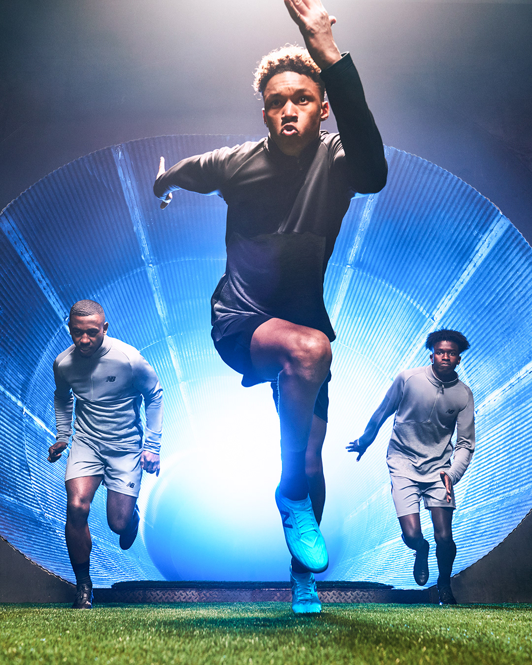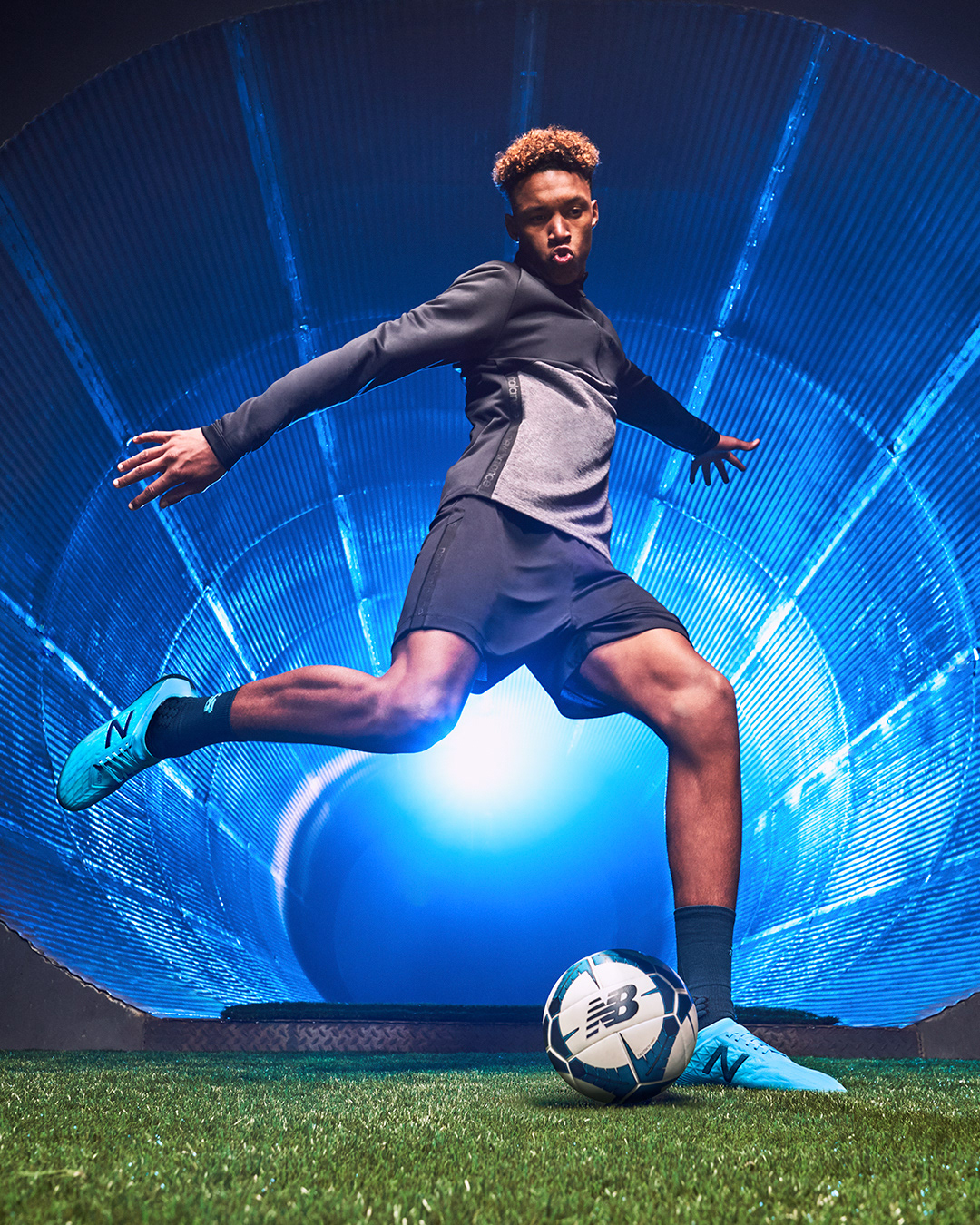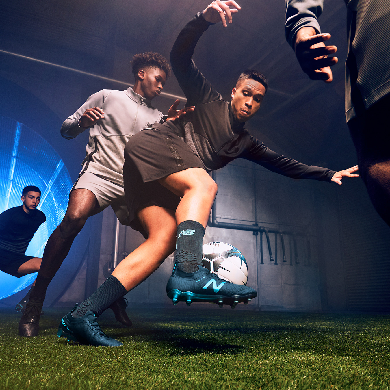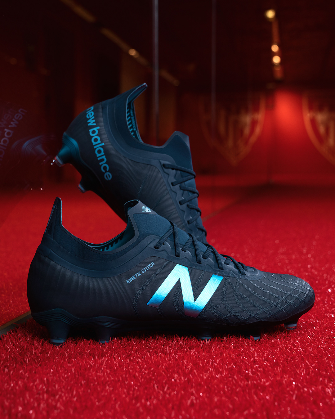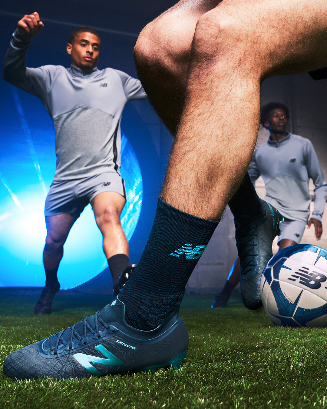 Social media stills supporting the launch of the Deep Ozone Blue/Bayside Blue colourways for the New Balance Furon V5 and Tekela V2 football boots, featuring Liverpool FC and Senegal star Sadio Mané.
